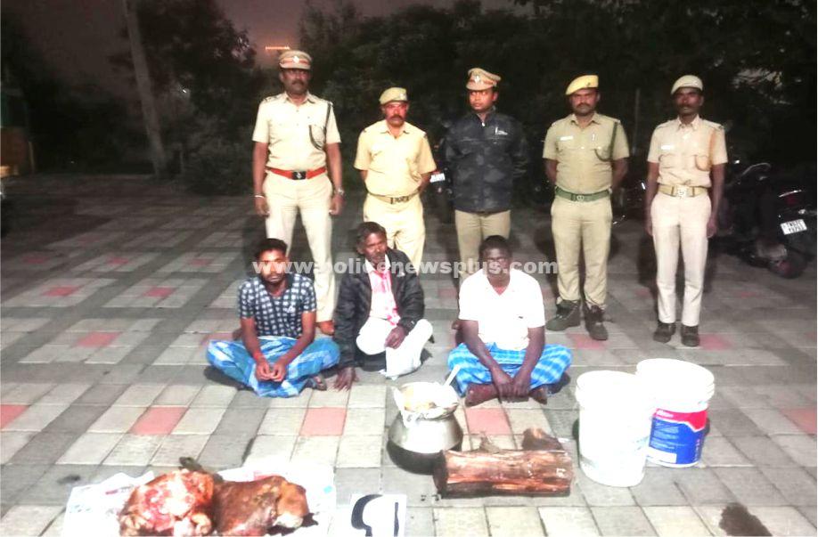 திண்டுக்கல்: திண்டுக்கல் மாவட்டம் கொடைக்கானல் இசிசி ரோடு பகுதியில் இறந்து கிடந்த காட்டு பன்றியை வனத்துறைக்கு தெரிவிக்காமல் சமைத்த சாப்பிட்ட இசிசிரோடு, திருவள்ளுவர் நகர் பகுதியை சேர்ந்த கிருஷ்ணன்(65). செந்தில்குமார்(48). விஜயகுமார்(28). ஆகிய 3 பேரை வனத்துறையினர் வன உயிரின சட்டப்படி கைது செய்து தலா ரூ. 20 ஆயிரம் அபராதம் விதித்து வழக்கு பதிவு செய்தனர்.
