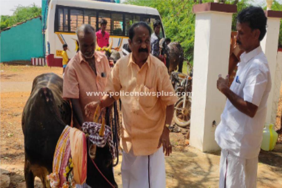 சிவகங்கை : சிவகங்கை தாலுகா வேம்பங்குடி கிராமத்தில் வீரமிகு தமிழர் திருநாள் மாட்டு பொங்கலை முன்னிட்டு மஞ்சுவிரட்டு விரட்டிற்கு வருகை தந்த காளைகளுக்கு சிவகங்கை சிங்கம் நகர் மன்ற தலைவர் உயர்திரு சி.எம். துரைஆனந்த், B.A அவர்கள் சால்வை மாற்றும் துண்டு அணிவித்து வரவேற்றனர்.