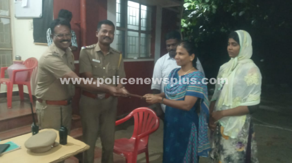 திண்டுக்கல்: திண்டுக்கல் அம்பாத்துரை அருகே செட்டியபட்டியை சேர்ந்த தேன்மொழி (20) என்ற பெண் காணவில்லை என்று பெற்றோர்கள் புகார் கொடுத்தனர். அதனைத் தொடர்ந்து அம்பாத்துரை போலீசார் வழக்குப்பதிவு செய்து. விழுப்புரம் மாவட்டத்தில் இருந்தவரை மீட்டு பெற்றோரிடம் ஒப்படைத்தனர். மேலும் மீட்டு காவல் நிலையம் அழைத்து வந்த ssi கண்ணன், ஏட்டு ராஜேஸ்வரி ஆகியோரை இன்ஸ்பெக்டர் வெங்கடாசலம், சப்-இன்ஸ்பெக்டர் முருகன் ஆகியோர் பாராட்டி வெகுமதி வழங்கினர்.