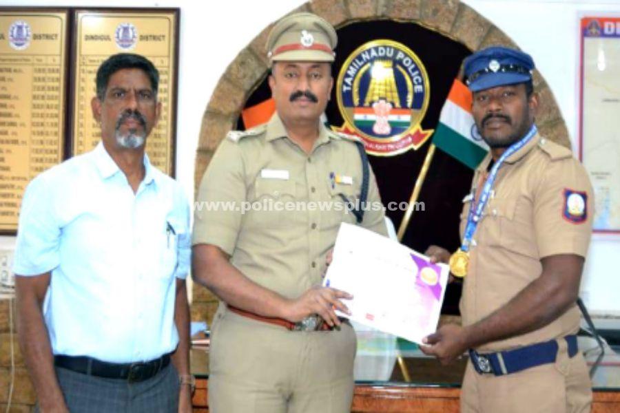 திண்டுக்கல் : திண்டுக்கல் மாவட்டம், விருவீடு காவல் நிலையத்தில் பணிபுரியும் முதல் நிலை காவலர் திரு.முனீஸ்வரன், அவர்கள் கிருஷ்ணகிரி மாவட்டத்தில் நடைபெற்ற தமிழக அளவிலான ஈட்டி எரிதல் போட்டியில் பங்கு பெற்று முதலிடத்தை பிடித்து தங்கப்பதக்கம் பெற்றார். இதையடுத்து (10.01.2023), திண்டுக்கல் மாவட்ட காவல் கண்காணிப்பாளர் திரு.V.பாஸ்கரன் அவர்கள் திரு.முனீஸ்வரன் அவர்களை நேரில் அழைத்து பாராட்டினார்கள்.