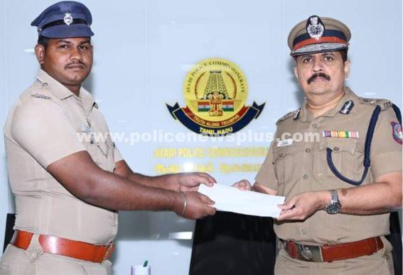 திருவள்ளூர் : (30.07.2024) ஆவடி காவல் ஆணையரக எல்லைக்குட்பட்ட காவல் நிலையங்களில் பணியின்போது சிறப்பாக மற்றும் துரிதமாக செயல்பட்ட காவல் ஆளிநர்களின் செயலைப் பாராட்டி ஆவடி காவல் ஆணையாளர் திரு. கி. சங்கர் இ.கா.ப., அவர்கள் வெகுமதி வழங்கி சிறப்பித்தார்கள்.