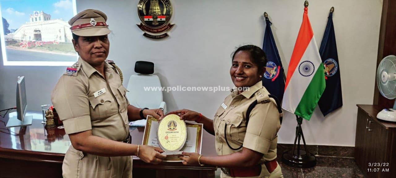 இராணிப்பேட்டை மாவட்ட காவல் அலுவலகத்தில் இன்று (23.03.2022) பிப்ரவரி மாதத்தில் சிறப்பாக பணிபுரிந்த காவல் ஆய்வாளர், மற்றும் உதவி ஆய்வாளர், காவல் ஆளிநர்கள் கணினி ஆப்ரேட்டர் (CCTNS), நிலைய எழுத்தர், நீதிமன்ற காவலர், குற்றப்பிரிவு, நடப்புதாள் எழுத்தர், ரோந்து பணி காவலர் ஆகியோரை பாராட்டி அவர்களை ஊக்குவிக்கும் விதமாக மாவட்ட காவல் கண்காணிப்பாளர் மருத்துவர்.தீபா சத்யன், இ.கா.ப., அவர்கள் பாராட்டுச் சான்றிதழ் மற்றும் கேடயம் வழங்கினார்.