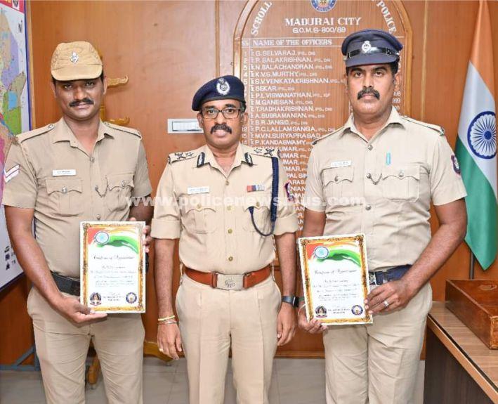 மதுரை: மதுரை மாநகர செல்லூர் எல்லைக்கு உட்பட்ட பகுதிகளில், காவல் நிலைய காவலர் பாலசுப்பிரமணியம் மற்றும் ஆயுதப்படை காவலர் வினோத்குமார் ஆகிய இருவரும் நேற்று மாலை இரு சக்கர வாகன ரோந்து பணியில் ஈடுபட்டிருந்த போது, தத்தனேரி பகுதியில் சந்தேகத்திற்கு இடமாக ஆட்டோவில் நின்றிருந்த நபர்களை விசாரித்த போது இவர்கள் 4.300 கிலோகிராம் மதிப்புள்ள கஞ்சாவை ஆட்டோவில் வைத்திருந்தது தெரிய வந்தது. எனவே, அந்நபர்களையும் அவர்கள் வைத்திருந்த ஆட்டோ, கஞ்சாவை பறிமுதல் செய்து செல்லூர் காவல் நிலையத்தில் ஒப்படைத்தனர். இச்செயலை பாராட்டும் விதமாக மதுரை மாநகர ஆணையர் முனைவர் லோகநாதன் , காவலர்களை நேரில் அழைத்து பாராட்டி வாழ்த்துக்களை தெரிவித்து பண வெகுமதியும் கொடுத்து கௌரவித்தார்.