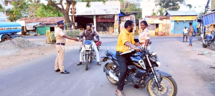 சிவகங்கை : சிவகங்கை மாவட்டம் காரைக்குடி உட்கோட்ட காரைக்குடி மையமாகக் கொண்ட காரைக்குடி தெற்கு காவல் நிலையம் எல்லைக்கு உட்பட்ட நடராஜா தியேட்டர் அருகில் சிவகங்கை மாவட்ட காவல் கண்காணிப்பாளர் ஆஷிஷ் ராவத்(இகாப) அவர்கள் உத்தரவுபடி காரைக்குடி உட்கோட்ட காவல்துறை கண்காணிப்பாளர் பார்த்திபன்(தகாப) அவர்கள் மேற்பார்வையில் காரைக்குடி தெற்கு காவல் நிலைய ஆய்வாளர் வாசிவம் அவர்கள் தலைமையில் தெற்கு காவல் நிலைய சிறப்பு சார்பு ஆய்வாளர் பத்மாவதி அவர்கள் முன்னிலையில் காவலர் செல்வராஜா அவர்கள் ஆகியோர் வாகன சோதனையின் போது பொதுமக்களுக்கு கனிவான அன்பான முறையில் போக்குவரத்து விதிமுறை மற்றும் தலைக்கவசம் மற்றும் கனரா வாகனங்கள் சீட் பெல்ட் அணிவது கடைபிடிக்கும்படி அறிவுறுத்தினர்.