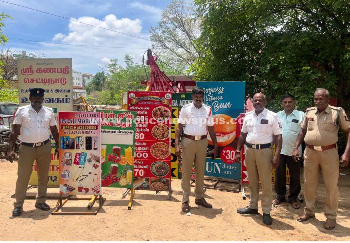 திண்டுக்கல்: திண்டுக்கல் நகர் பகுதியில் அனுமதியின்றி வைக்கப்பட்ட 50க்கும் மேற்பட்ட விளம்பர பதாகைகள் பறிமுதல். திண்டுக்கல் நகர் வாகனம் அதிகம் செல்லக்கூடிய பகுதியில் பொதுமக்களுக்கு இடையூறாக சாலையின் நடுவே வைத்திருந்த 50க்கும் மேற்பட்ட பதாகைகள் போக்குவரத்து காவல் ஆய்வாளர் தட்சனாமூர்த்தி தலைமையில் ஆன காவல்துறையினர் போக்குவரத்துக்கு இடையூறாய் இருந்தவற்றை பறிமுதல் செய்தனர்.