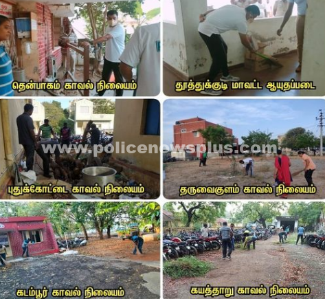 தூத்துக்குடி : தமிழக காவல்துறை தலைமை இயக்குநர் அவர்கள் காவல் நிலையங்கள், அலுவலகங்கள் மற்றும் காவல்துறைக்கு சொந்தமான நிலங்களை தூய்மையாக பாதுகாக்கும் பொருட்டு மாதத்தில் இரண்டாவது சனிக்கிழமை தூய்மை தினமாக கடைபிடிக்குமாறு உத்தரவிட்டுள்ளார். அதன்படி மாவட்ட காவல் கண்கா ணிப்பாளர் டாக்டர் திரு. எல். பாலாஜி சரவணன்