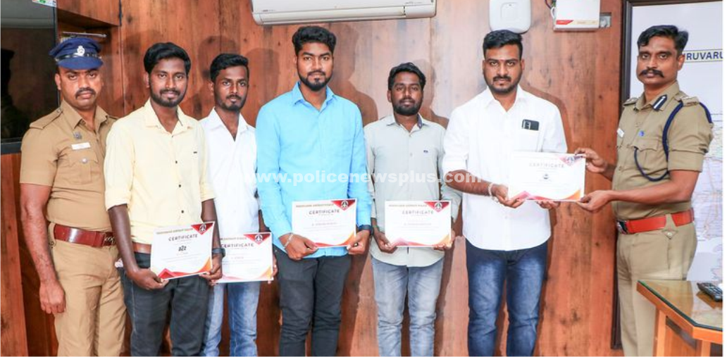 மாவட்ட காவல் அலுவலகத்திற்கு நேரில் அழைத்து பாராட்டி குழுவினர் அனைவருக்கும் நற்சான்றிதழ்கள் வழங்கினார்கள்.