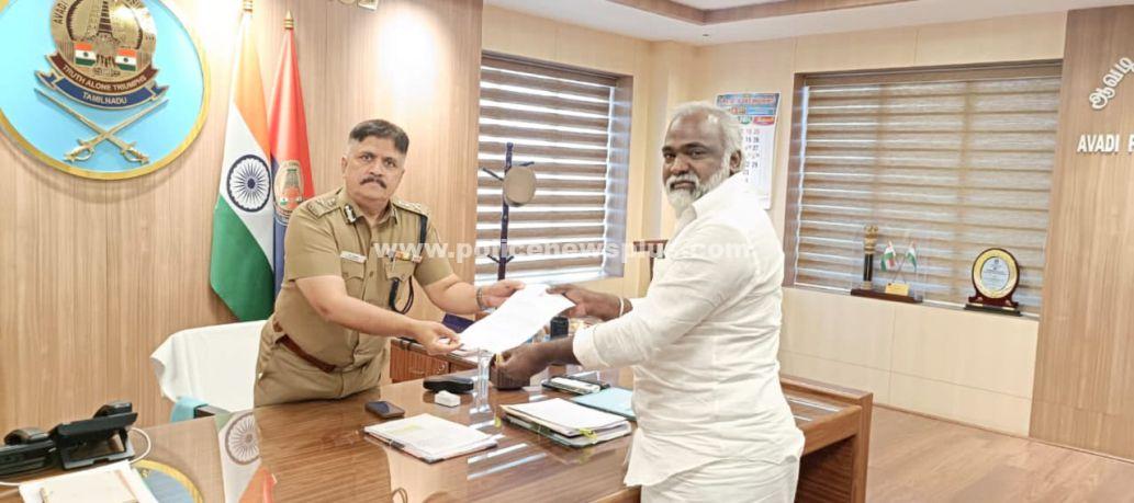 திருவள்ளூர் : பொன்னேரி – திருவொற்றியூர் சாலையில் போக்குவரத்திற்கு இடையூறாக உள்ள சாலை தடுப்புகளை ஒழுங்குபடுத்திடவும், மீஞ்சூர் பி.டி.ஓ அலுவலகம் முதல் பட்டமந்திரி வரையில் கனரக வாகனங்களை மாற்று பாதையில் அனுமதிப்பது குறித்து உரிய நடவடிக்கை எடுக்க வலியுறுத்தி பொன்னேரி எம்.எல்.ஏ துரை.சந்திரசேகர் ஆவடி மாநகர காவல் ஆணையர் சங்கரிடம் மனு அளித்தார்.