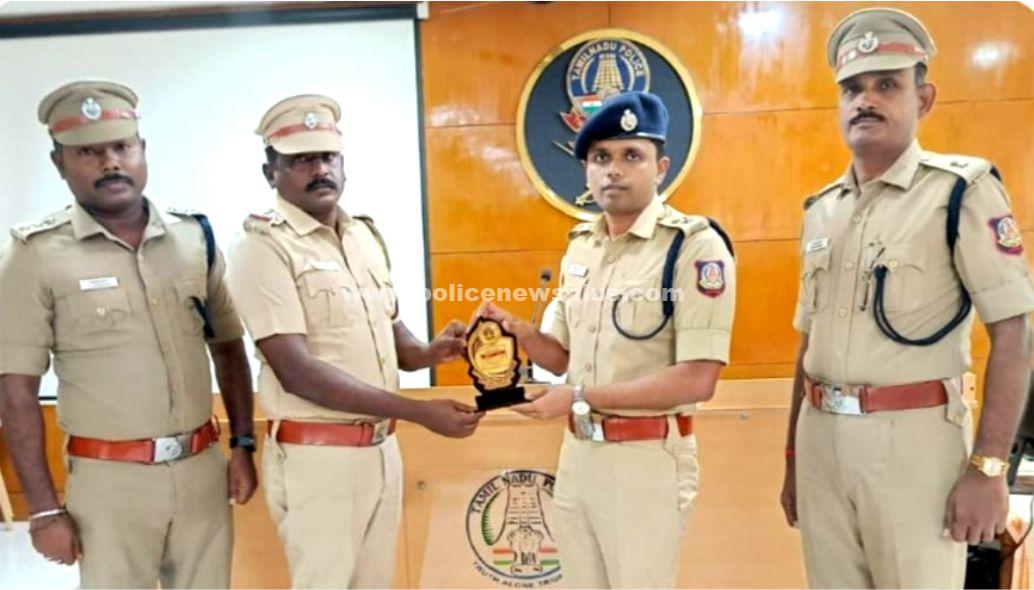 காவல் ஆய்வாளர்களுக்கு நினைவு பரிசு வழங்கிய எஸ்.பி