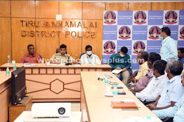 திருவண்ணாமலை: திருவண்ணாமலை மாவட்ட காவல் அலுவலக கலந்தாய்வு கூட்ட அரங்கில் திருவண்ணாமலை மாவட்ட காவல் கண்காணிப்பாளர் திரு.அ.பவன் குமார்,இ.கா.ப., அவர்களின் தலைமையில் நடைபெற்ற கலந்தாய்வு கூட்டத்தில் திருவண்ணாமலை மாவட்ட பள்ளிகளின் தலைமை ஆசிரியர்கள் கலந்து கொண்டனர். இக்கூட்டத்தில் குழந்தைகளுக்கு எதிரான குற்றங்களை தடுப்பது குறித்தும், குழந்தைகள் போதை பொருட்களுக்கு அடிமையாவததை தடுப்பது குறித்தும், குழந்தைகளுக்கு எதிரான குற்றங்கள் மற்றும் போதைப் பொருள் குறித்த விழிப்புணர்வை பள்ளி மாணவ மாணவிகளிடம் ஏற்படுத்த வேண்டும் என மாவட்ட காவல் கண்காணிப்பாளர் அவர்கள் பள்ளி தலைமை ஆசிரியர்களிடம் தெரிவித்தார்.