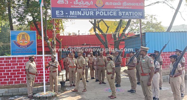 திருவள்ளூர்: இந்திய திருநாட்டின் 76வது குடியரசு தின விழாவை முன்னிட்டு ஆவடி காவல் ஆணையரகத்திற்கு உட்பட்ட மீஞ்சூர் காவல் நிலையத்தில் காவல் ஆய்வாளர் வேலுமணி மூவர்ண கொடியை ஏற்றி வைத்து மரியாதை செய்தார். தொடர்ந்து காவலர்களுக்கும், பொதுமக்களுக்கும் இனிப்புகள் வழங்கி குடியரசு தினம் உற்சாகமாக கொண்டாடப்பட்டது.