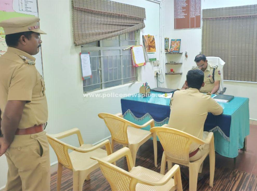 கடலூர்: கடலூர் மாவட்டம் காவல் கண்காணிப்பாளர் திரு. S. ஜெயக்குமார் IPS அவர்கள் சிதம்பரம் நகர் காவல் நிலைய ஆவணங்களை பார்வையிட்டு ஆய்வு மேற்கொண்டார். புகார் மனுக்கள் மீது உடனடியாக நடவடிக்கைகள் எடுக்க காவல் அதிகாரிகளுக்கு அறிவுரை வழங்கினார். துணை காவல் கண்காணிப்பாளர் திரு. D.பிரதீப் அவர்கள் உடன் இருந்தார்.