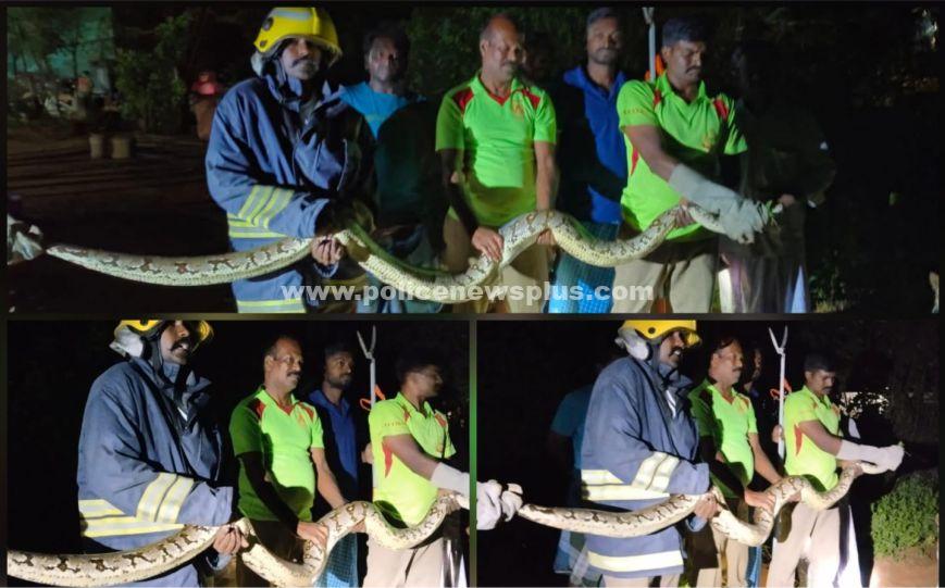 திண்டுக்கல் : திண்டுக்கல் மாவட்டம் நத்தம் அருகே சிறுகுடி இந்திராநகரில் குடியிருப்பு பகுதியில் காந்தி என்பவரது வீட்டின் முன்பு நேற்று இரவு 10 அடி நீளமுள்ள மலைப்பாம்பை ஊர்ந்து சென்று கொண்டிருந்தது. தகவல் அறிந்து சம்பவ இடத்திற்கு விரைந்து வந்த தீயணைப்புத்துறையினர் பாம்பை லாவகமாக பிடித்து வனத்துறை வசம் ஒப்படைத்தனர்.