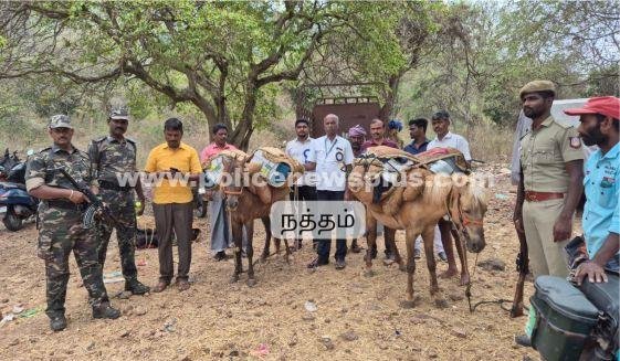 திண்டுக்கல்: திண்டுக்கல் மாவட்டத்தில் மழை பகுதிகளில் பலத்த பாதுகாப்புடன் வாக்கு இயந்திரங்கள் கொண்டு செல்லப்பட்டன. திண்டுக்கல் மாவட்டத்தில், நத்தம், சிறுமலை, போன்ற பகுதிகளில் உள்ள வாக்கு சாவடிகளுக்கு வாக்கு இயந்திரங்கள் பலத்த பாதுகாப்புடன் கழுதைகள் மூலமாக கொண்டு செல்லப்படும். மலைப்பகுதியில் உள்ள வாக்கு சாவடிகளுக்கு, பிராணிகளை பயன்படுத்துவது வழக்கமாக உள்ளது. திண்டுக்கல் மாவட்ட ஆட்சியர் ஆலோசனையின் பேரில், வாக்கு இயந்திரங்கள் பலத்த பாதுகாப்புடன் கொண்டு செல்லப்பட்டன.