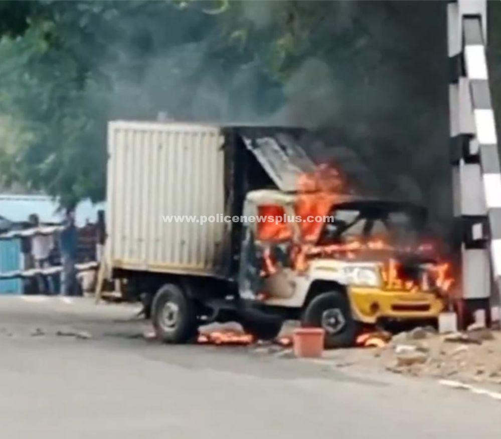 தியுள்ளது. மதுரை பாண்டி கோவிலைச் சேர்ந்த சரவணக்குமார் என்பவர் சரக்கு வாகனத்தில் பால் பாக்கெட்டுகளை ஏற்றிக் கொண்டு கம்பத்தில் இறக்கிவிட்டு, மீண்டும் மதுரை நோக்கி வந்து கொண்டிருந்த போது, மதுரை மாவட்டம், உசிலம்பட்டி அருகே , மதுரை – தேனி எல்லையான ஆண்டிபட்டி கணவாய் பகுதியில் நடுரோட்டில் திடீரென தீபிடித்து எரிந்தது.