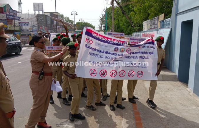 திருநெல்வேலி: திருநெல்வேலி மாநகர காவல் ஆணையர் சந்தோஷ் ஹாதிமணி, இ.கா.ப., அறிவுறுத்தலின் படி மாநகர காவல் அதிகாரிகள் மூலம் மாநகர காவல் எல்லைக்குட்பட்ட பகுதியில் உள்ள பள்ளிகள், கல்லூரிகளில் போதைப் பொருள் பயன்படுத்துவதால் ஏற்படும் தீமைகள் பற்றிய விழிப்புணர்வு ஏற்படுத்தப்பட்டு வருகிறது. அதன் தொடர்ச்சியாக சர்வதேச போதை தடுப்பு தினமான (26.06.2025) அன்று மாநகர மதுவிலக்கு காவல் ஆய்வாளர், இந்திரா தலைமையில் மாணவ, மாணவியர், மற்றும் பொது மக்களுக்கும் போதை பொருட்களால் ஏற்படும் பாதிப்புகள் குறித்து விழிப்புணர்வு பேரணி மற்றும் நிகழ்ச்சி நடத்தி உறுதிமொழி ஏற்கப்பட்டது.