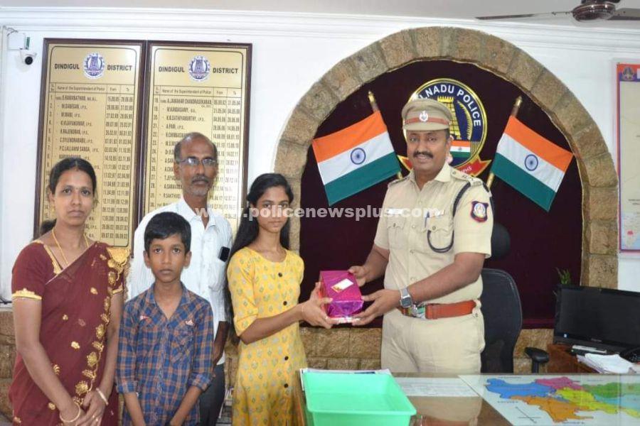 திண்டுக்கல் : திண்டுக்கல் மாவட்டம் அண்ணாமலையார் மில்ஸ் பெண்கள் மேல்நிலைப் பள்ளியில் படித்து தமிழகத்தில் நடந்து முடிந்த 12- ம் வகுப்பு அரசு பொதுத்தேர்வில் மாநில அளவில் 600 க்கு 600 மதிப்பெண்கள் எடுத்து சாதனை படைத்த மாணவி நந்தினியை மாவட்ட காவல் கண்காணிப்பாளர் திரு.V.பாஸ்கரன் அவர்கள் நேரில் அழைத்து பரிசு பொருள் வழங்கி பாராட்டினார்கள்