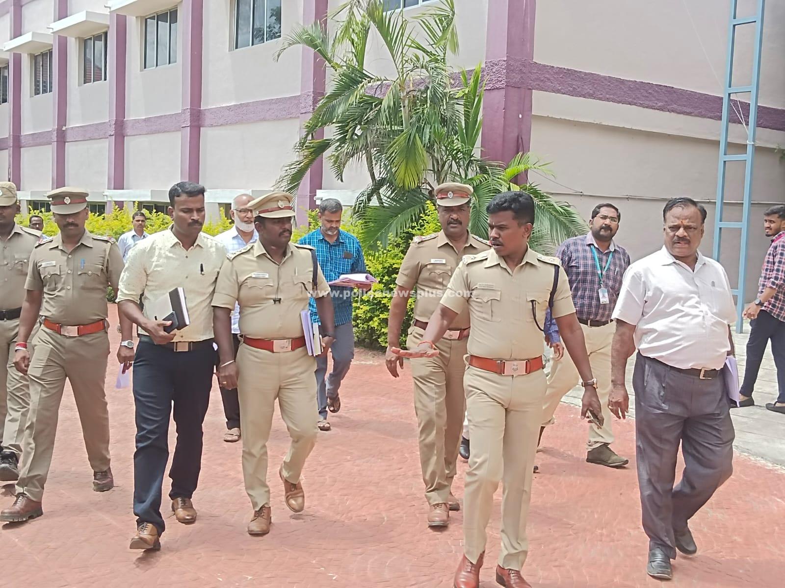 திருப்பத்தூர் : திருப்பத்தூர் மாவட்டத்தில், வருகின்ற 25, 26 ம் தேதிகளில் தமிழ்நாடு காவல்துறை சார்பு ஆய்வாளர், நேரடி தேர்வு நடைபெறக்கூடிய தேர்வு மையமான பிரியதர்ஷினி பொறியியல் தனியார் கல்லூரியில், திருப்பத்தூர் மாவட்ட காவல் கண்காணிப்பாளர் திரு. பாலகிருஷ்ணன், மற்றும் துணை காவல் கண்காணிப்பாளர் வாணியம்பாடி திரு. சுரேஷ் பாண்டியன், மற்றும் உடன் அதிகாரிகள் தேர்வு மையத்தை பார்வையிட்டு ஆய்வு செய்தனர்.