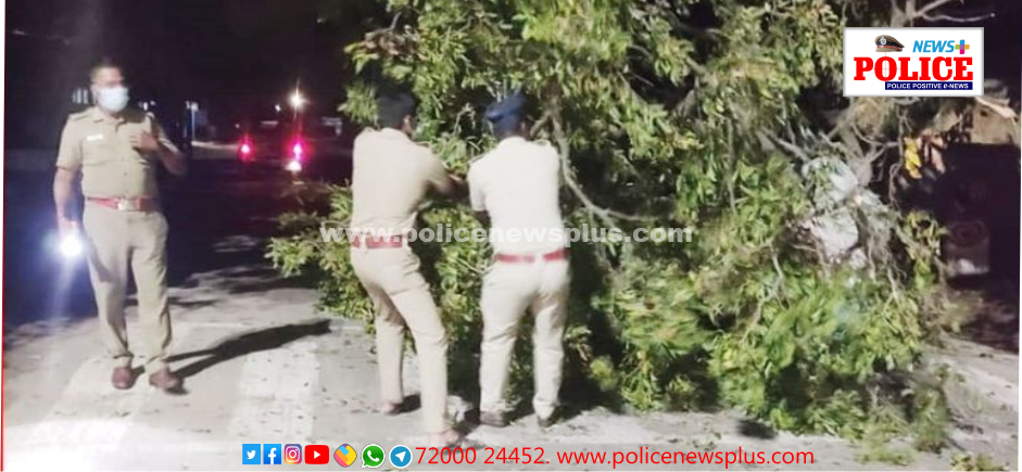 திருவண்ணாமலை: திருவண்ணாமலை மாவட்டம், தச்சம்பட்டு காவல் நிலைய எல்லைக்குட்பட்ட காட்டாம்பூண்டி கிராமத்தில் சாலையின் நடுவே முறிந்து விழுந்த மரத்தை திருவண்ணாமலை கிராமிய துணை காவல் கண்காணிப்பாளர் திரு.K.அண்ணாதுரை மற்றும் காவலர்கள் விரைந்து சென்று மரத்தை அகற்றி போக்குவரத்தை சீர் செய்தனர். இச்செயலுக்கு மாவட்ட காவல் கண்காணிப்பாளர் திரு.அ.பவன் குமார்,இ.கா.ப., அவர்கள் பாராட்டு தெரிவித்தார்.