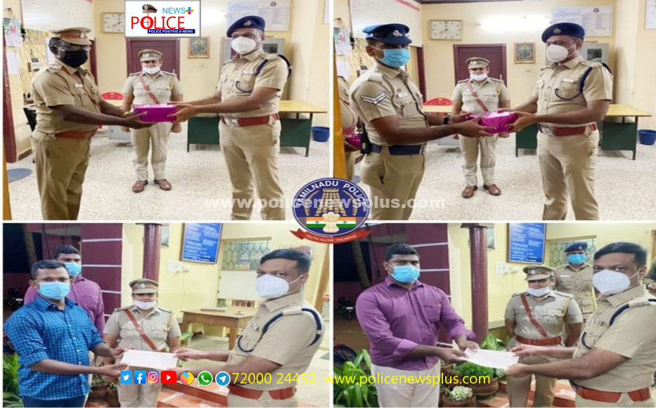 அப்போது மாவட்ட காவல் கண்காணிப்பாளர் அவர்கள் இரவு ரோந்தின்போது சிறப்பாக பணிபுரிந்த உதவி ஆய்வாளர் திரு.பொன்னுசாமி, மற்றும் காவலர் திரு சண்முகம் ஆகியோர்க்கு பரிசு வழங்கி ஊக்கப்படுத்தினார்.