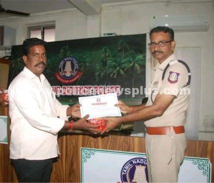 திருவாரூர்: திருவாரூர் மாவட்டத்தில் சிறப்பாக பணியாற்றிய காவலர்களுக்கு நற்சான்றிதழ் வழங்கினார். மாவட்ட காவல் கண்காணிப்பாளர் எஸ் ஜெயக்குமார் எம்.எஸ்.சி அவர்கள் கொலை கொள்ளை ரவுடிசம் பான் மசாலா குட்கா விற்பனை மற்றும் பெண்கள் மற்றும் குழந்தைகளுக்கு எதிரான குற்ற செயல்களில் ஈடுபடும் நபர்கள் மீது மிகக் கடுமையான நடவடிக்கை மேற்கொள்ளப்பட்டு வருகிறது. அதன்படி குற்ற செயல்கள் ஈடுபடும் நபர்கள் மீது கடும் நடவடிக்கை மேற்கொண்டு காவல் அலுவலர்களை நேரில் அழைத்து பாராட்டு சான்றிதழ் வழங்கப்பட்டு வருகிறது. அதன்படி எடையூர் காவல் கரகத்தில் அரசால் தடை செய்யப்பட்ட சுமார் 5 லட்சம் மதிப்புள்ள 546 கிலோ புகையிலை குட்கா பான் மசாலா வீட்டில் பதுக்கி வைத்திருந்ததை சிறப்பாக செயல்பட்டு பறிமுதல் செய்த எடையூர் காவல் நிலைய தலைமை காவலர் எஸ் கலையரசன் தனிப்பிரிவு முதல் நிலைக் காவலர் கே மோகன் தாசன் முதல் நிலைக் காவலர் எஸ் சுரேஷ் காவலர் ராஜேஷ் ஆகியோருக்கு காவல் கண்காணிப்பாளர் பாராட்டின் அச்சான்றிதழ் வழங்கினார்.
