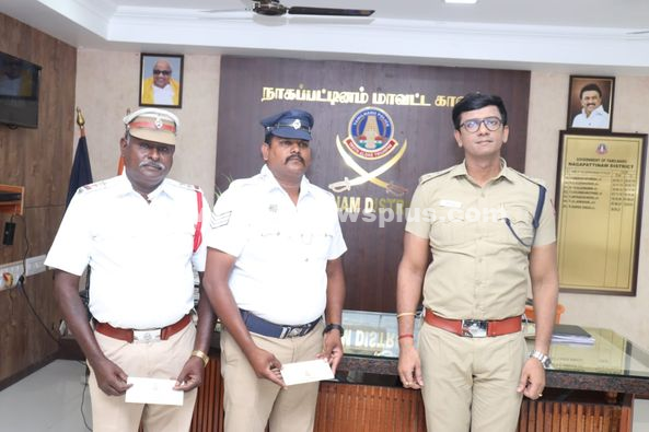 நாகப்பட்டினம்: மாண்புமிகு தமிழக முதல்வரின் வருகையின் போது பாதுகாப்பு பணியில் சிறப்பாக பணியாற்றிய நாகை மாவட்ட காவல்துறையினருக்கு பண வெகுமதி மற்றும் பாராட்டு சான்றிதழ் அளித்து கௌரவித்த கூடுதல் காவல் துறை இயக்குனர் அவர்கள், சிறப்பாக செயல்பட்ட நாகை மாவட்ட காவல்துறையினரை காவல் கண்காணிப்பாளர் அவர்கள் நேரில் அழைத்து பாராட்டினார்கள்