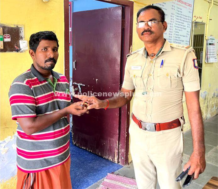 திருநெல்வேலி : திருநெல்வேலி சீவலப்பேரி காவல் நிலையத்தில் பணியாற்றும் சிறப்பு உதவி ஆய்வாளர் ஞானவேல்., (15.05.2025) அன்று ரோந்து பணியில் இருந்த போது, சீவலப்பேரி பஜாரில் உள்ள ஒரு கடை அருகே சுமார் 1.200 கிராம் எடையுள்ள தங்க வளையல் கேட்பாரற்ற நிலையில் கிடப்பதை கண்டுள்ளார். உடனடியாக அந்த வளையலை உரியவரிடம் சேர்க்க நினைத்து சீவலப்பேரி காவல் நிலையத்தில் ஒப்படைத்துள்ளார்.