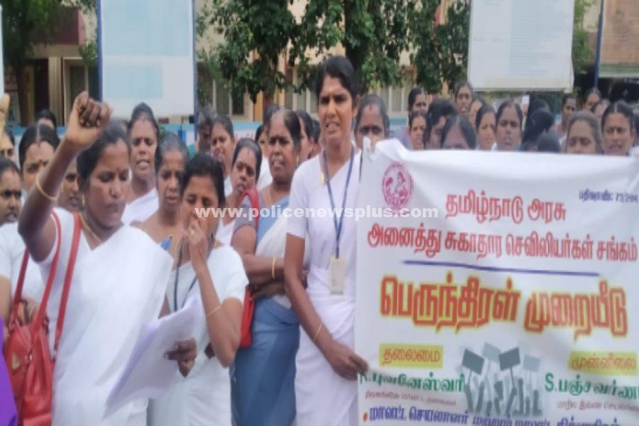 சிவகங்கை : சிவகங்கை மாவட்ட ஆட்சியர் அலுவலகம் முன்பு தமிழ்நாடு சுகாதார செவிலியர்கள் சங்கம் சார்பில் மாவட்ட தலைவர் N.புவனேஸ்வரி தலைமையிலும் மாநில இணை செயலாளர் S. பஞ்சவர்ணம் முன்னிலையிலும் பெருந்திரள் முறையீடு ஐந்து அம்ச கோரிக்கைகளை வலியுறுத்தியும் கண்டண ஆர்ப்பாட்டம் நடைபெற்றது.