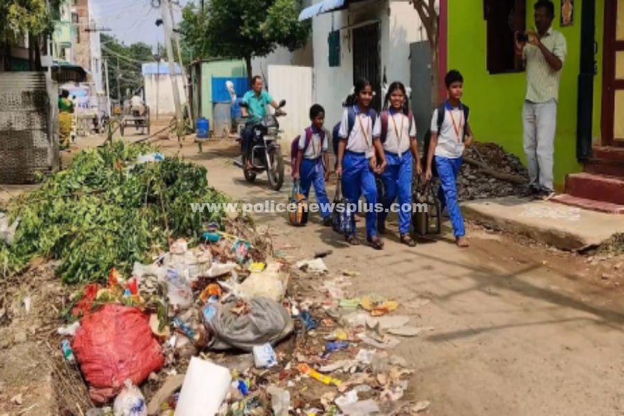 மதுரை : மதுரை மாவட்டம், திருப்பரங்குன்றம் அவனியாபுரம் 100- வது வார்டு பகுதியில் உள்ள பிரசன்னா காலனி, காட்டு மாரியம்மன் கோவில் வீதி, புதுத்தெரு பகுதியில் உள்ள சாக்கடையில் குப்பைகள் அடைப்பால் கழிவுநீர் தேங்கியுள்ளது. மேலும், குப்பைகள் அகற்றப்படாமல் காட்டு மாரியம்மன் கோவில் பகுதியில் குவித்து வைக்கப்பட்டுள்ளதால், பொதுமக்கள், மற்றும் மாணவர்கள் அவதியடைகின்றனர். மாணவர்களின் பெற்றோர்கள் கூறுகையில், இந்த பகுதியில் பள்ளி வளாகம் அமைந்துள்ளது. சாக்கடையில் அள்ளப்பட்ட குப்பைகள் குவிக்கப்பட்டு 10 நாட்களுக்கும் அள்ளப்பட்ட வில்லை, மாநகராட்சி அதிகாரிகளிடம் புகார் கூறியும் எவ்வித நடவடிக்கையும் இல்லை இதனால், மழைகாலத்தில் குப்பைகளினால் நோய் பரவும் அச்சத்துடனே வந்து செல்லும் நிலை உள்ளது என்கின்றனர்.