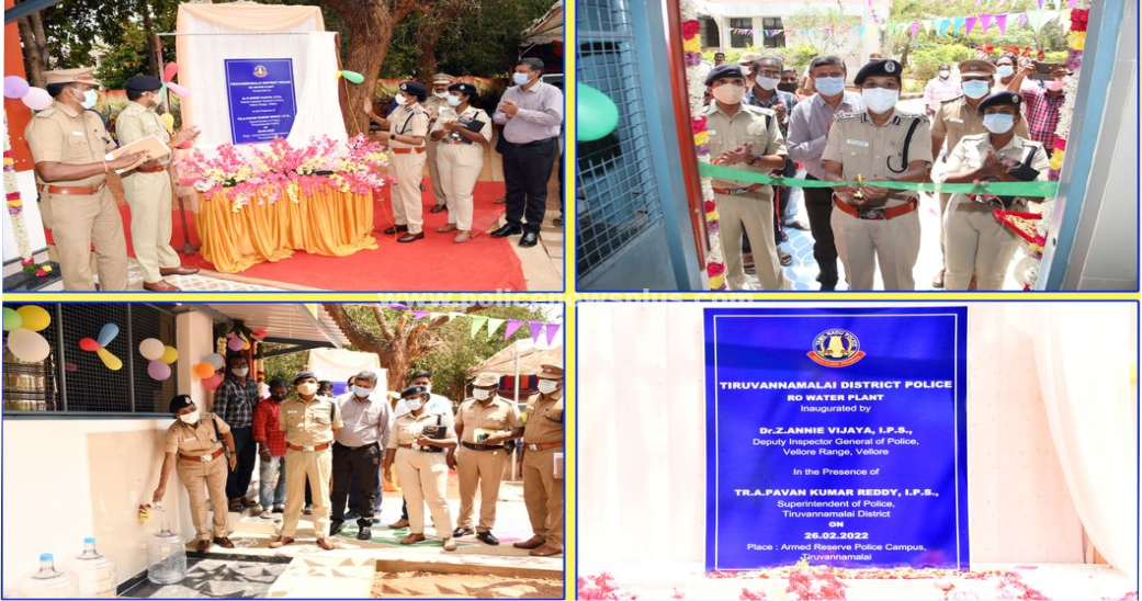 திருவண்ணாமலை: திருவண்ணாமலை மாவட்ட காவல் அலுவலகம், ஆயுதப்படை அலுவலகம் மற்றும் காவல்துறையினர் குடும்பங்களுக்கு சலுகை விலையில் சுத்திகரிக்கப்பட்ட குடிநீர் வழங்கும் நோக்கத்தில் திருவண்ணாமலை மாவட்ட காவல் அலுவலக வளாகத்தில் அமைந்துள்ள மாவட்ட ஆயுதப்படை அலுவலகத்தின் முன் சுமார் 10 லட்ச ரூபாய் மதிப்பீட்டில் அமைக்கப்பட்டுள்ள, ஒரு மணி நேரத்திற்கு 1000 லிட்டர் சுத்திகரிக்கப்பட்ட குடிநீரை வழங்கும் திறனுள்ள சுத்திகரிக்கப்பட்ட குடிநீர் அமைப்பை வேலூர் சரக காவல்துறை துணை தலைவர் டாக்டர்.திருமதி.Z.ஆனி விஜயா,இ.கா.ப.. அவர்கள் இன்று 26.02.2022 -ந் தேதி தொடங்கி வைத்தார்.