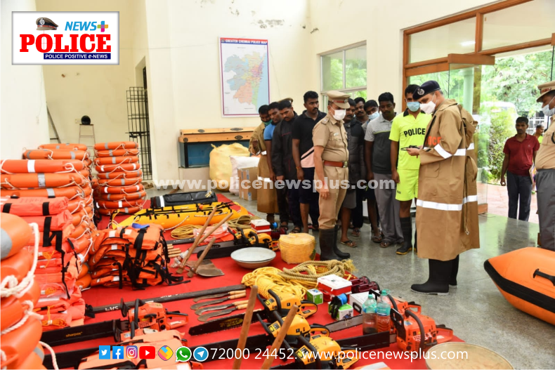 சென்னை: சென்னை பெருநகர காவல் ஆணையாளர் திரு.சங்கர் ஜிவால், இ.கா.ப அவர்கள் இன்று (07.11.2021) காலை எழும்பூர், ராஜரத்தினம் மைதான வளாகத்தில் காவல் துறை பேரிடர் மீட்பு (Tamil Nadu State Disaster Response Force) குழுவினருக்கு வழங்கப்பட்டுள்ள உபகரணங்களை (Equipments) பார்வையிட்டு மீட்பு குழுவினருக்கு தகுந்த அறிவுரைகள் வழங்கினார்.