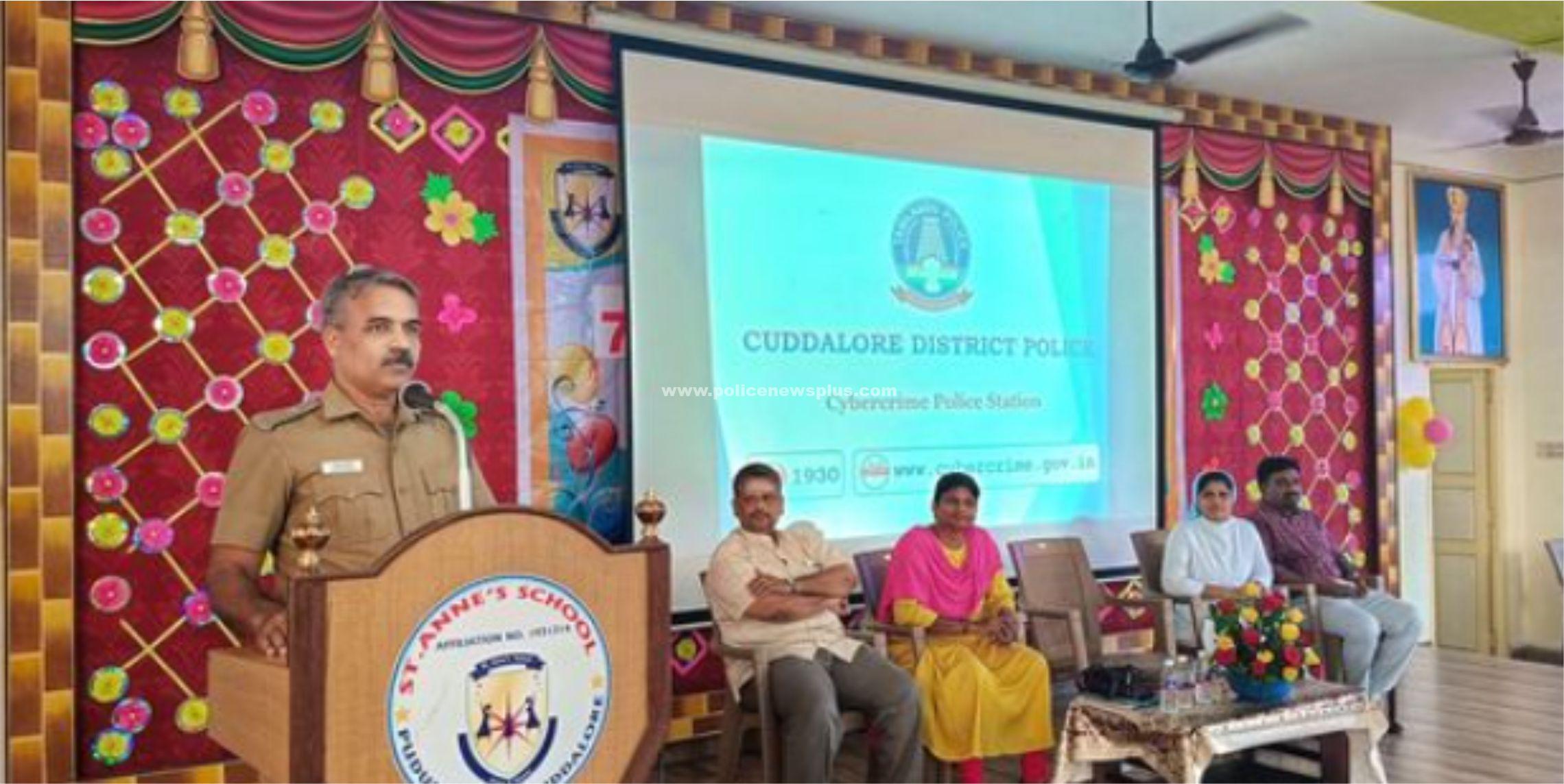 கடலூர்: கடலூர் மாவட்ட காவல் கண்காணிப்பாளர் திரு. இரா. இராஜாராம் அவர்களின் அறிவுரையின்பேரில், இன்று 16.03.2024 தேதி சைபர் கிரைம் கூடுதல் காவல் கண்காணிப்பாளர் திரு. பிரபாகரன் அவர்கள் தலைமையில் கடலூர் புனித அன்னாள் CBSE பள்ளியில் சைபர் கிரைம் பற்றி பள்ளி மாணவிகள் மற்றும் பெற்றோர்களுக்கு பெருகி வரும் இணையவழி குற்றங்கள் குறித்தும், CELL PHONE பயன்பாடு குறித்தும் குழந்தைகளுக்கு அதனால் ஏற்படும் பாதிப்புகள் குறித்தும், அவற்றிலிருந்து கவனமுடன் இருக்க போதுமான வழிமுறைகள் குறித்தும், OTP தொடர்பான குற்றங்கள் குறித்தும், குறிப்பாக போலி வேலை வாய்ப்பு குற்றங்கள், வங்கி தொடர்பான Link ல் செல்லகூடாது, மற்றும் தற்போது பெருகி வரும் E CHALLAN FRAUD, EB BILL Fraud, Part Time Job Fraud குறித்தும் நோட்டீஸ் வழங்கியும், விழிப்புணர்வு ஏற்படுத்தப்பட்டது. இந்த விழிப்புணர்வு நிகழ்ச்சியில் 1930 உதவி எண் மற்றும் www.cybercrime.gov.in குறித்து விளக்கமளித்து சைபர் கிரைம் சம்பந்தமான விழிப்புணர்வு துண்டு பிரசுரங்கள் வழங்கி அறிவுரைகள் வழங்கப்பட்டன.