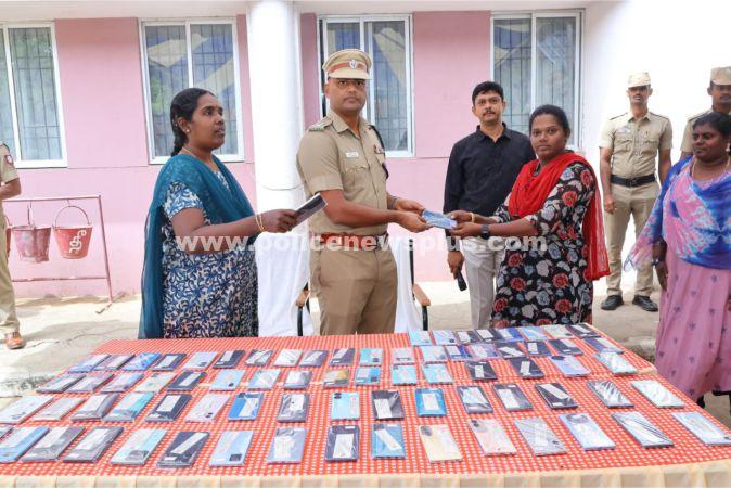 இதன் மதிப்பு Rs. 18,18,873/- ஆகும். மேலும் காணாமல் போன (அ) தவறவிட்ட கைப்பேசிகள் தொடர்பாக புகார் அளிக்க CEIR- Central Equipment Identity Register https://www.ceir.gov.in/ இந்திய தொலைத் தொடர்பு துறையால் பிரத்யேகமாக உருவாக்கப்பட்டுள்ளது. இந்த இணையதளத்தில் புகார்தாரர் தனது தொலைந்து போன (அ) தவறவிட்ட கைபேசி தொடர்பான விவரங்களை பதிவு செய்து புகார் அளிக்கலாம் (அ) காவல் நிலையத்தில் பதிவு செய்து புகார் அளிக்கலாம். காணாமல் போன கைபேசியை பயன்படுத்தி பல குற்றங்கள் செய்ய வாய்ப்பு உள்ளதால் தொலைந்து (அ) காணாமல் போனால் அது குறித்து உடனே அருகில் உள்ள காவல் நிலையத்தில் புகாரளித்தால், அவற்றை மீட்க முடியும் என பொதுமக்களிடம் விழிப்புணர்வு ஏற்படுத்தப்பட்டது.