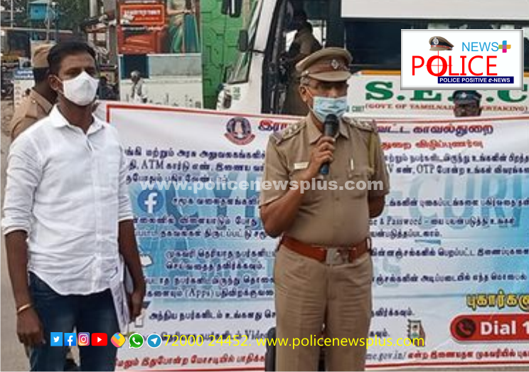 இதனை தொடர்ந்து 10.11.2021-ம் தேதி இராமநாதபுரம் மாவட்ட புதிய பேருந்து நிலையம் பகுதியில் சைபர் கிரைம் காவல் ஆய்வாளர் திரு.வெற்றிவேல்ராஜன் அவர்கள் பொதுமக்களுக்கு சைபர் குற்றங்கள் குறித்து விழிப்புணர்வு ஏற்படுத்தினார்.