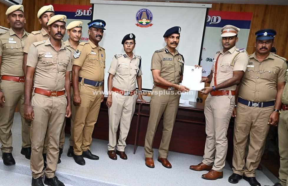 வேலூர் : திருவண்ணாமலை மாவட்ட தனிப்படை உதவி ஆய்வாளர் திரு.M.சத்யாநந்தன், அவர்களின் தலைமையிலான காவல்துறையினர் அரசால் தடை செய்யப்பட்ட 20.5 கி.கி கஞ்சா, 1030 கி.கி குட்கா பொருட்கள் பறிமுதல், சட்டவிரோதமாக கடத்தப்பட்ட 19 டன் ரேஷன் அரிசி பறிமுதல், 12 லாட்டரி வழக்குகள், மற்றும் 10 வழிப்பறி வழக்குகளில் சிறப்பாக பணிபுரிந்தமைக்காக, மெச்சத் தகுந்த பணியை பாராட்டி. (29.05.2022)-ந் தேதி வேலூர் சரக அலுவலகத்தில் நடைபெற்ற நிகழ்வில், தமிழக தலைமை காவல் துறை இயக்குனர் திரு.C.சைலேந்திரபாபு,இ.கா.ப., அவர்கள் பாராட்டுச் சான்றிதழ் வழங்கி பாராட்டினார். இந்நிகழ்வில் வேலூர் சரக காவல்துறை துணைத் தலைவர் டாக்டர்.Z. ஆனி விஜயா,இ.கா.ப., அவர்கள் திருவண்ணாமலை மாவட்ட காவல் கண்காணிப்பாளர் திரு.அ.பவன்குமார்,இ.கா.ப., அவர்கள் உடன் இருந்தனர்.