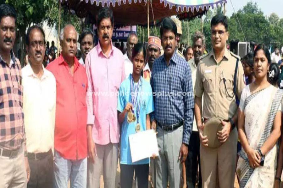 விழுப்புரம் : விழுப்புரம் தமிழக அளவில் நடைபெற்ற 3-வது மாநில செவித்திறன் குறைபாடுள்ள மாணவ, மாணவிகளுக்கான விளையாட்டு போட்டிகள் சென்னையில் உள்ள நேரு விளையாட்டு அரங்கத்தில் 3 நாட்கள் நடைபெற்றது. இதில் விழுப்புரம் மாவட்டத்திலிருந்து விழுப்புரம் எம்.ஆர்.ஐ.சி. ஆர்.சி. உயர்நிலைப்பள்ளியில் 10-ம் வகுப்பு படிக்கும் மாணவி சுபஸ்ரீ கலந்துகொண்டு 100 மீ, 200 மீ, 400 மீ ஓட்டம், நீளம் தாண்டுதல் போட்டிகளில் வெற்றிப்பெற்று தங்கப்பதக்கம் வென்று சாதனை படைத்தார். இவரை விழுப்புரம் மாவட்ட கலெக்டர் மோகன், விழுப்புரம் மாவட்ட போலீஸ் சூப்பிரண்டு ஸ்ரீநாதா, மாவட்ட விளையாட்டு அலுவலர் வேல்முருகன் மற்றும் மாவட்ட கல்வி அதிகாரிகள் பாராட்டினர். அப்போது பள்ளியின் தலைமையாசிரியர் புஷ்பராஜா, உடற்கல்வி ஆசிரியர்கள் அல்போன்ஸ், சோபியா, ஆரோக்கியநாதன், ஆரோக்கியராஜ் ஆகியோர் உடனிருந்தனர்.