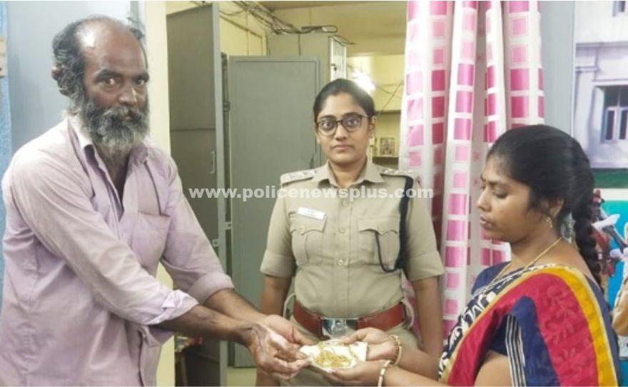 தேனி : தேனி மாவட்டம், பெரியகுளம் காவல் நிலைய எல்லைக்குட்பட்ட வடகரை சுப்பிரமணிய சாவடி தெரு பகுதியில், திரு.முத்துப்பாண்டி என்பவர்(20.09.22), நடந்து சென்று கொண்டிருந்தபோது கீழே கிடந்த பர்ஸ் ஒன்றை எடுத்து திறந்து பார்த்ததில் அதில் 10 பவுன் மதிக்கத்தக்க தங்க செயின் இருந்ததையடுத்து பெரியகுளம் காவல் ஆய்வாளர் திருமதி.M.மீனாட்சி, அவர்களிடம் உரியவரிடம் ஒப்படைக்குமாறு சொல்லிவிட்டு சென்று விட்டார். காவல்துறையின் விசாரணையில் அந்த தங்க செயின் பெரியகுளம் மூன்றாந்தாள் பகுதியைச் சேர்ந்த பாண்டிச்செல்வி என்பவரின் தங்க செயின் என்று தெரியவந்ததையடுத்து, பெரியகுளம் உட்கோட்ட காவல் துணை கண்காணிப்பாளர் திருமதி.T.கீதா, அவர்கள் முன்னிலையில் 10 பவுன் தங்கசெயினை திரு.முத்துப்பாண்டி அவர்கள் உரியவரிடம் ஒப்படைத்தார். தங்க நகை பெற்றுக் கொண்ட பெண் திரு.முத்துப்பாண்டி அவர்களுக்கும், தேனி மாவட்ட காவல்துறையினருக்கும் தனது நெஞ்சார்ந்த நன்றிகளை தெரிவித்துக் கொண்டார்.