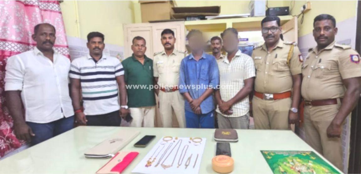 இச்சம்பவம் குறித்து மாவட்ட காவல் கண்காணிப்பாளர் திரு. ஆல்பர்ட் ஜான் இ.கா.ப அவர்கள் உத்தரவின் பேரில் திருச்செந்தூர் உட்கோட்ட காவல் துணை கண்காணிப்பாளர் திரு. மகேஷ்குமார் மேற்பார்வையில் திருச்செந்தூர் காவல் நிலைய ஆய்வாளர் திரு. இன்னோஷ்குமார் தலைமையில் உதவி ஆய்வாளர்கள் திருமதி. காந்திமதி, திரு. குமார் மற்றும் போலீசார் மேற்படி சம்பவ இடத்திற்கு அருகில் உள்ள சிசிடிவி காட்சிகளை ஆய்வு செய்து விசாரணை மேற்கொண்டதில் தூத்துக்குடி குரும்பூர் கூரந்தாவிளையைச் சேர்ந்த முத்து மகன் வைகுண்ட வாசகன் (எ) வைகுண்டம் (29). மற்றும் திருச்செந்தூர் அடைக்கலாபுரம் பகுதியைச் சேர்ந்த சுரேஷ் மகன் விஜயகுமார் (27). ஆகியோர் மேற்படி தங்க நகை உள்ள பேக்கை திருடியது தெரியவந்தது. இதனையடுத்து மேற்படி போலீசார் எதிரிகள் இருவரையும் கைது செய்து அவர்களிடமிருந்து 18 பவுன் தங்க நகைகளையும் மீட்டனர். மேலும் இது குறித்து திருச்செந்தூர் காவல் நிலைய போலீசார் விசாரணை மேற்கொண்டு வருகின்றனர்.