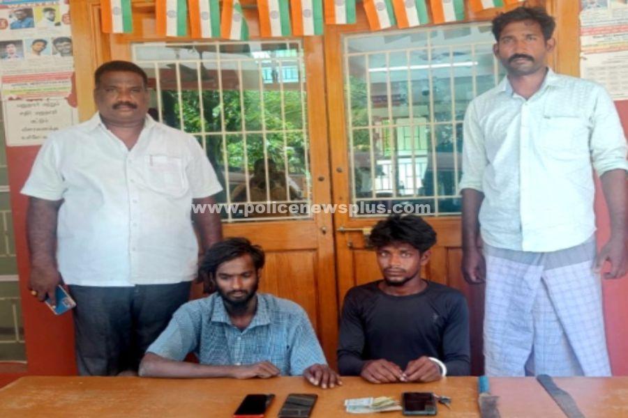 தஞ்சாவூர் : தஞ்சாவூர் மாவட்டம், பாபநாசம் உட்கோட்டம் பாபநாசம் புறப்பகுதிகளில் செல்லும் வயதானவர்களை குறி வைத்து சிலர் அவர்களிடம் கத்தியை காட்டி மிரட்டி அவர்களிடம் உள்ள பணம் மற்றும் செல்போன் போன்றவற்றை பறித்து தொடர் வழிப்பறிகள் நடைபெற்று வருவதாக புகார்கள் வந்ததை தொடர்ந்து இது போன்ற குற்றச் செயல்களில் ஈடுபடும் குற்றவாளிகளை இனம் கண்டு உடனடியாக கைது செய்ய தஞ்சை மாவட்ட காவல்துறை கண்காணிப்பாளர் திரு.ஆசிஷ் ராவத் ஐ.பி.எஸ், அவர்களின் உத்தரவின்படி பாபநாசம் உட்கோட்ட துணை காவல்துறை கண்காணிப்பாளர் திருமதி. பூரணி அவர்களின் மேற்பார்வையில் அய்யம்பேட்டை காவல் உதவி ஆய்வாளர் திரு. ராஜேஷ்குமார், மற்றும் கபிஸ்தலம் சிறப்பு உதவி ஆய்வாளர் திரு. அன்பு நம்பியார், மற்றும் காவலர் பிரபாகர், ஆகியோர் அடங்கிய தனிப்படை போலீசார் இப்பகுதிகளில் உள்ள CCTV கேமரா மற்றும் செல்போன்களை ஆராய்ந்து தீவிர தேடுதல் வேட்டை மேற்கொண்டு வந்தார்கள். இந்நிலையில் தனிப்படை போலீசாருக்கு திருமண்டக்குடி சர்க்கரை ஆலை அருகே பாழடைந்த குடியிருப்பு ஒன்றில் இருவர் பதுங்கி இருப்பதாக ரகசிய தகவல் கிடைத்தது. அதன் அடிப்படையில் (12 – 6- 2023 ) அங்கு சென்ற போலீசார் அந்த வீட்டில் பதுங்கிருந்த இருவரை சுற்றி வளைத்து மடக்கி பிடித்து விசாரணை மேற்கொண்டார்கள்.