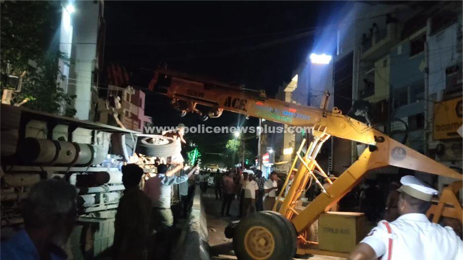 ஆரப்பாளையம் பேருந்து நிலையத்திற்கு வந்த அரசு பேருந்து திடீரென சாலையில் கவிழ்ந்து விபத்து ஏற்பட்டதால், வைகையாற்று கரையோர சாலையில் கடும் போக்குவரத்து நெரிசல்
