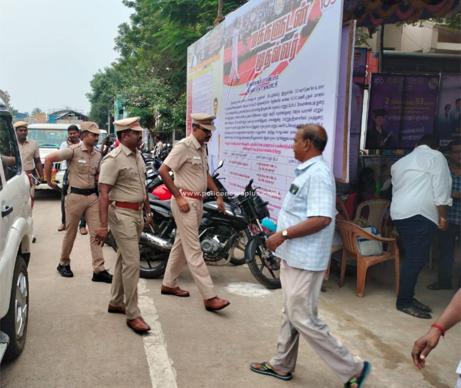 திருவாரூர் : தமிழக முதல்வர் அவர்களின் அறிவுறுத்தலின், பேரில் இன்று (18.12.2023) திருவாரூர் சாந்தி திருமண மண்டபத்தில், மக்களிடமிருந்து மனுக்களை பெற்று உடனடியாக தீர்வு காணும் “Service Delivery @ Door Steps” திட்டத்தின் கீழ் திருவாரூர் நகராட்சிக்கு உட்பட 18,19,20,21 மற்றும் 22 வார்டுகளில் பொதுமக்கள் அளிக்கும் மனுக்கள் மற்றும் புகார் மனுக்கள் மீது உடனடி தீர்வு காணும் சிறப்பு முகாம் நடைப்பெற்றது. இந்நிகழ்ச்சியில் மாவட்ட மாவட்ட காவல் கண்காணிப்பாளர் *திரு.S.ஜெயக்குமார், M.Sc, (Agri).,* அவர்கள் கலந்து கொண்டார்கள்.
