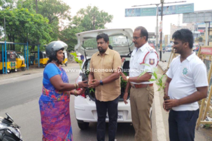 உலக சுற்றுச்சூழல் தினத்தை முன்னிட்டு, திண்டுக்கல் நகர போக்குவரத்து காவல்துறை ஆய்வாளர் திரு.சேரலாதன் அவர்கள் தலைக்கவசம் மற்றும் சீட் பெல்ட் அணிந்து வந்த வாகன ஓட்டுகளுக்கு மரக்கன்றுகள் பரிசாக வழங்கினார். சாலை விபத்துக்களை தடுக்கும் வகையில் திண்டுக்கல் மாவட்ட போக்குவரத்துக் காவல் துறையில் சார்பில் விழிப்புணர்வு ஏற்படுத்தும் வகையில், திண்டுக்கல் நகர போக்குவரத்து காவல்துறையினர் மற்றும் சமூக ஆர்வலர் பால்தாமஸ், முன்னாள் ராணுவ வீரர் மாறவர்மன் ஆகியோர் இருசக்கர நான்கு சக்கர வாகன ஓட்டிகளுக்கு மரக்கன்றுகளை விழிப்புணர்வை ஏற்படுத்தினர். சுமார் 50க்கும் மேற்பட்ட மரக்கன்றுகள் வழங்கப்பட்டது.
