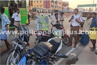 திண்டுக்கல்: திண்டுக்கல் நகர் போக்குவரத்து காவல்துறையினர் சார்பாக பழனி சாலையில் இருசக்கர வாகன தணிக்கை சோதனை மேற்கொள்ளப்பட்டது. காவல் நிலைய ஆய்வாளர் ஜெயசந்திரன் தலைமையில் நடைபெற்ற இந்த சோதனையில், இருசக்கர வாகன ஓட்டிகளுக்கு தலைகவசம் அணிவதின் முக்கியத்துவம் குறித்து போக்குவரத்து காவல்துறையினர் விழிப்புணர்வு ஏற்படுத்தினர். மேலும் முறையான ஆவணங்கள் இன்றி வாகனங்களை இயக்கிய ஓட்டிகளுக்கு அபராதம் விதித்து எச்சரிக்கை செய்து அனுப்பினர்.