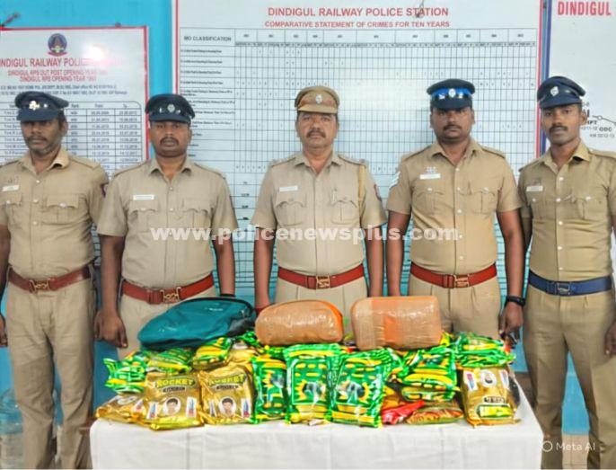 திண்டுக்கல் இரயில் நிலையத்தில் 22 கிலோ கஞ்சா, குட்கா பறிமுதல்