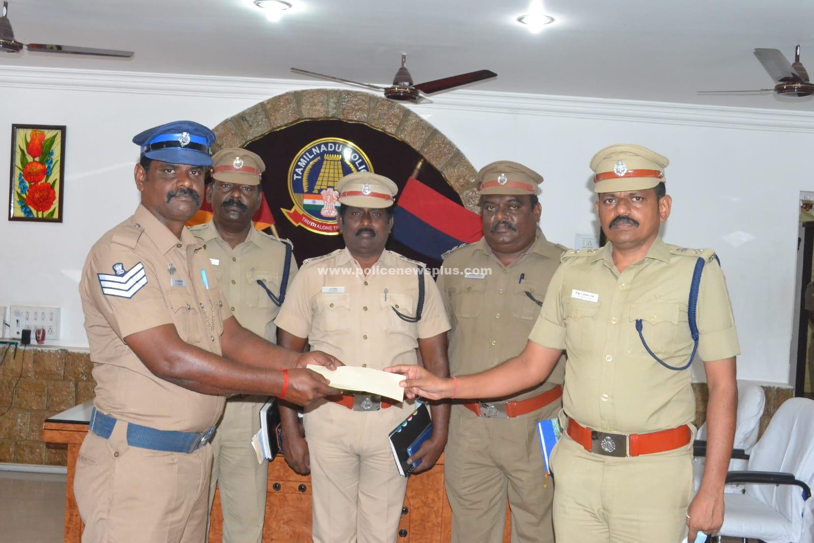 திண்டுக்கல் : திண்டுக்கல் மாவட்டம் வடமதுரை, காவல் நிலைய எல்லைக்குட்பட்ட அய்யலூரில், நகைக்கடையை உடைத்து திருட முற்பட்ட நபரை அங்கு ரோந்து பணியில் இருந்த சிறப்பு சார்பு ஆய்வாளர் திரு. ரவிச்சந்திரன், அவர்கள் மற்றும் தலைமை காவலர் திரு.வடிவேல், ஆகியோர் மடக்கிப் பிடித்தனர். சிறப்பாக பணி செய்த காவலர்களை இன்று (25.04.2022) மாவட்ட காவல் கண்காணிப்பாளர் திரு.V.R.ஸ்ரீனிவாசன், அவர்கள் நேரில் அழைத்து வெகுமதி வழங்கி பாராட்டினார்கள்.