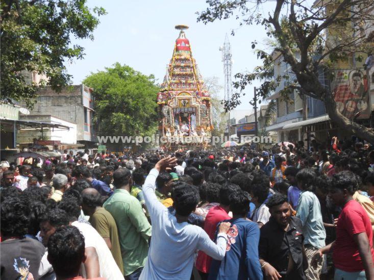 திருவள்ளூர் : வட காஞ்சி என அழைக்கப்படும் பிரசித்தி பெற்ற திருவள்ளூர் மாவட்டம் மீஞ்சூரில் அமைந்துள்ள அருள்மிகு ஸ்ரீ காமாட்சி அம்பிகை உடனுறை ஸ்ரீ ஏகாம்பரநாதர் திருக்கோயிலில் பங்குனி மாத பிரம்மோற்சவ விழா ஆலயத்தில் கொடியேற்றத்துடன் துவங்கியது. இதனை தொடர்ந்து ஆலயத்தில் நாள்தோறும் சிறப்பு வழிபாடு செய்து பஞ்ச மூர்த்திகள் திருவீதி உலா நடைபெற்ற வந்தது. இதனை தொடர்ந்து பங்குனி மாத பிரம்மோற்சவ விழாவின் முக்கிய நிகழ்வான தேரோட்டம் இன்று நடைபெற்றது. அலங்கரிக்கப்பட்ட திருத்தேரில் அன்னை காமாட்சி அம்மையுடன் ஏகாம்பரநாதர் எழுந்தருளி நகரின் முக்கிய மாட வீதிகள் வழியாக வலம் வந்து பக்தர்களுக்கு அருள்பாலித்தார். ஈரோட்டத்தின் போது கைலாய வாத்தியங்கள் முழங்கி மேளதாளங்களுடன் ஓம் நமச்சிவாய, ஓம் நமச்சிவாய என முழங்கி பக்தர்கள் தேரை வடம் பிடித்து இழுத்தனர். விழாவில் மீஞ்சூர், பொன்னேரி உள்ளிட்ட பல்வேறு சுற்றுப் பகுதிகளில் இருந்து திரளான பக்தர்கள் கலந்து கொண்டு தேரை வடம் பிடித்து இழுத்து சாமி தரிசனம் செய்தனர். முன்னதாக அமைச்சர் நாசர், எம்.எல்.ஏ துரை.சந்திரசேகர் ஆகியோர் தேரை வடம் பிடித்து இழுத்து துவக்கி வைத்து தேரில் ஏறி சாமி தரிசனம் செய்தனர்.