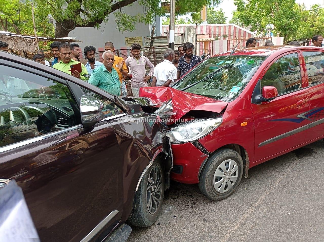 விருதுநகர் : விருதுநகர் மாவட்டம், சிவகாசி அருகேயுள்ள திருத்தங்கல் பகுதியில் உள்ள மாநகராட்சி, மண்டல அலுவலகம் அருகே இரண்டு கார்கள் நேருக்கு நேராக, மோதி விபத்து ஏற்பட்டதில், மூதாட்டி ஒருவர் காயமடைந்தார். ராமநாதபுரம் மாவட்டம், முதுகுளத்தூர் பகுதியைச் சேர்ந்த ஜெகநாதன் (50), இவர் தனது மனைவி பவானி, தாயார் விசாலாட்சி (68), மற்றும் உறவினர்களுடன், ஒரு காரில் சிவகாசி – முதலிபட்டி அருகேயுள்ள பெத்தலுபட்டி பகுதியில் உள்ள குலதெய்வ கோவிலுக்கு, சுவாமி கும்பிடுவதற்காக வந்துள்ளார்.
