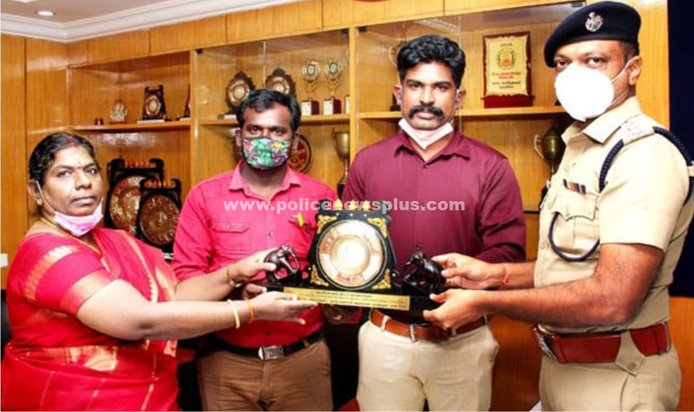 மேற்படி தமிழ் ஆட்சி மொழி திட்ட செயலாக்கத்தில் சிறந்த மாவட்ட நிலை அலுவலகமாக தேர்ந்தெடுக்கப்பட்டதற்கான கேடயம் மற்றும் சான்றிதழ்களை இன்று மாவட்ட காவல் கண்காணிப்பாளர் திரு.சரவணன், இ.கா.ப அவர்களிடம் வழங்கி வாழ்த்து பெற்றனர். மாவட்ட காவல் கண்காணிப்பாளர் அவர்கள் இதுபோல் தொடர்ந்து சிறப்பாக செயல்பட்டு பல்வேறு விருதுகள் பெற வேண்டுமென்று வாழ்த்து கூறினார்.அப்போது தனி விரல்ரேகை பதிவு கூடுதல் காவல் கண்காணிப்பாளர் திருமதி. சீனியம்மாள், விரல்ரேகை பிரிவு உதவி ஆய்வாளர்கள் திரு.நடராஜன், திரு.ரமணிதாஸ் ஆகியோர் உடனிருந்தனர்.