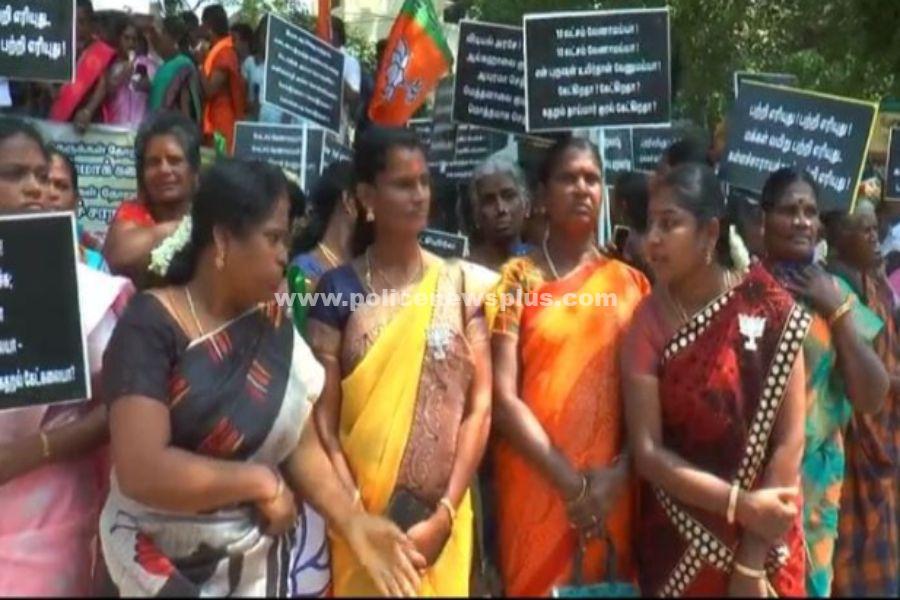 கண்டன ஆர்ப்பட்டதிலீடுபட்டனர்.தமிழ்நாட்டில், கள்ளச்சாராயம் குடித்து உயிரிழந்த விவகாரத்தில், திமுக அரசைக் கண்டித்து பல்வேறு அரசியல் கட்சியினர் போராட்டம் நடத்தி வருகின்றனர். அதன் தொடர்ச்சியாக, மதுரை மாநகர் மாவட்ட பாஜக மகளிரணி சார்பில் மாவட்ட ஆட்சியர் அலுவலகம் அருகே உள்ள திருவள்ளுவர் சிலை முன்பாக 100க்கும் மேற்பட்ட பாஜகவினர் கண்டன ஆர்ப்பாட்டத்தில் ஈடுபட்டனர். குறிப்பாக, தமிழ்நாட்டில் பூரண மதுவிலக்கை அமல்படுத்த வேண்டும், தமிழ்நாடு முதலமைச்சர் மு.க.ஸ்டாலின் பதவி விலக வேண்டும் சித்திரை திருவிழாவில் கூட்ட நெரிசலில் சிக்கி உயிரிழந்த நபர்களுக்கு 10 லட்சம் வழங்க வேண்டும் என, கைகளில் பதாகைகளை ஏந்தி கண்டன கோஷங்களை எழுப்பினர்.