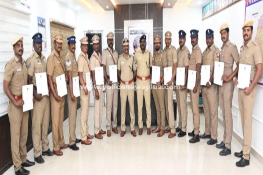 வேலூர் : வேலூர் சரக துணைத் தலைவர் முனைவர் M.S. முத்துசாமி இ.கா.ப., அவர்கள் மற்றும் வேலூர் மாவட்ட காவல் கண்காணிப்பாளர் திரு S. ராஜேஷ் கண்ணன் இ.கா.ப., அவர்கள் வேலூர் கோட்டையை சுற்றி பார்க்க வந்த சுற்றுலாப் பயணிகளை வீடியோ எடுத்து மிரட்டிய ஏழு நபர்கள் மீது வழக்கு பதிவு செய்து குற்றவாளிகளை துரிதமாக கைது செய்வதற்கு சிறப்பாக பணிபுரிந்த காவல் அதிகாரி மற்றும் ஆளிநருக்கு பாராட்டு சான்றிதழ் வழங்கி வாழ்த்துக்கள் தெரிவித்தனர்.